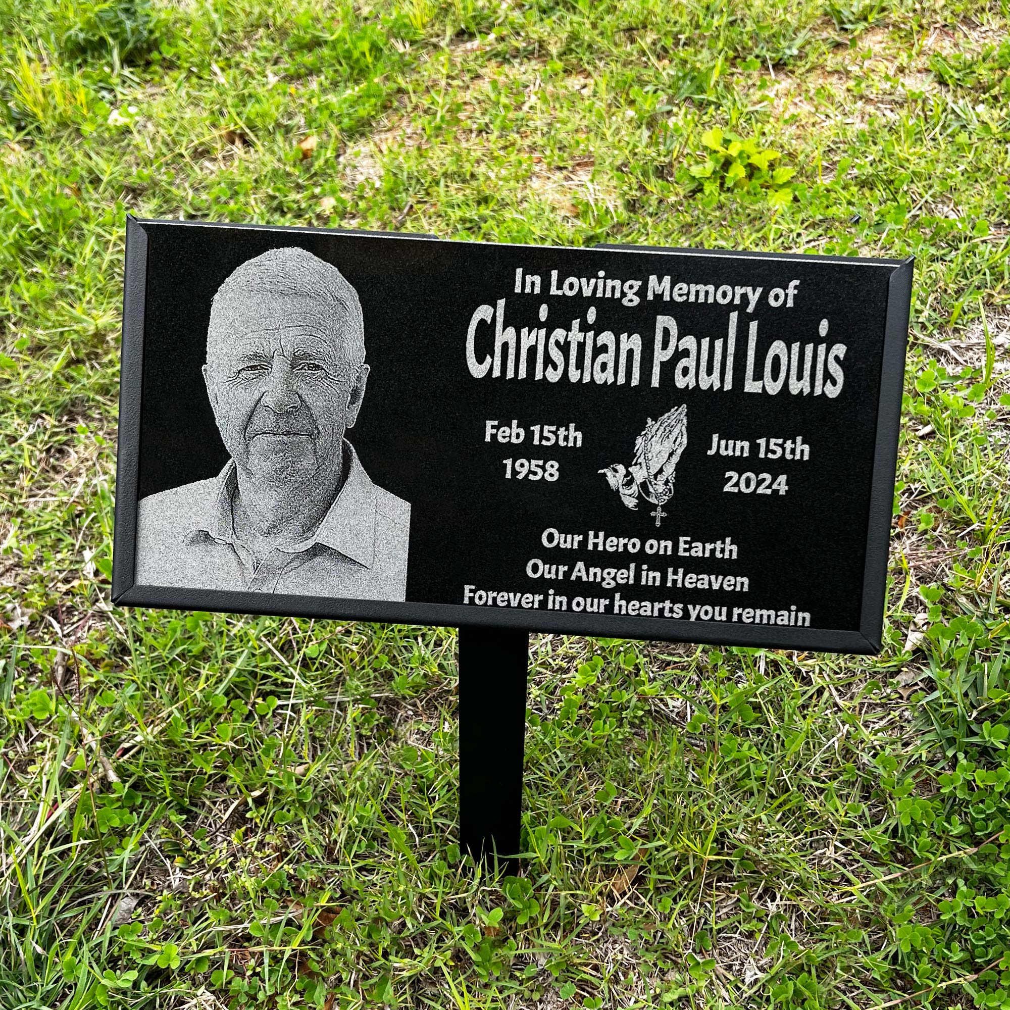Customized Human Memorial Stone, Black Granite Human Grave Marker With Photo