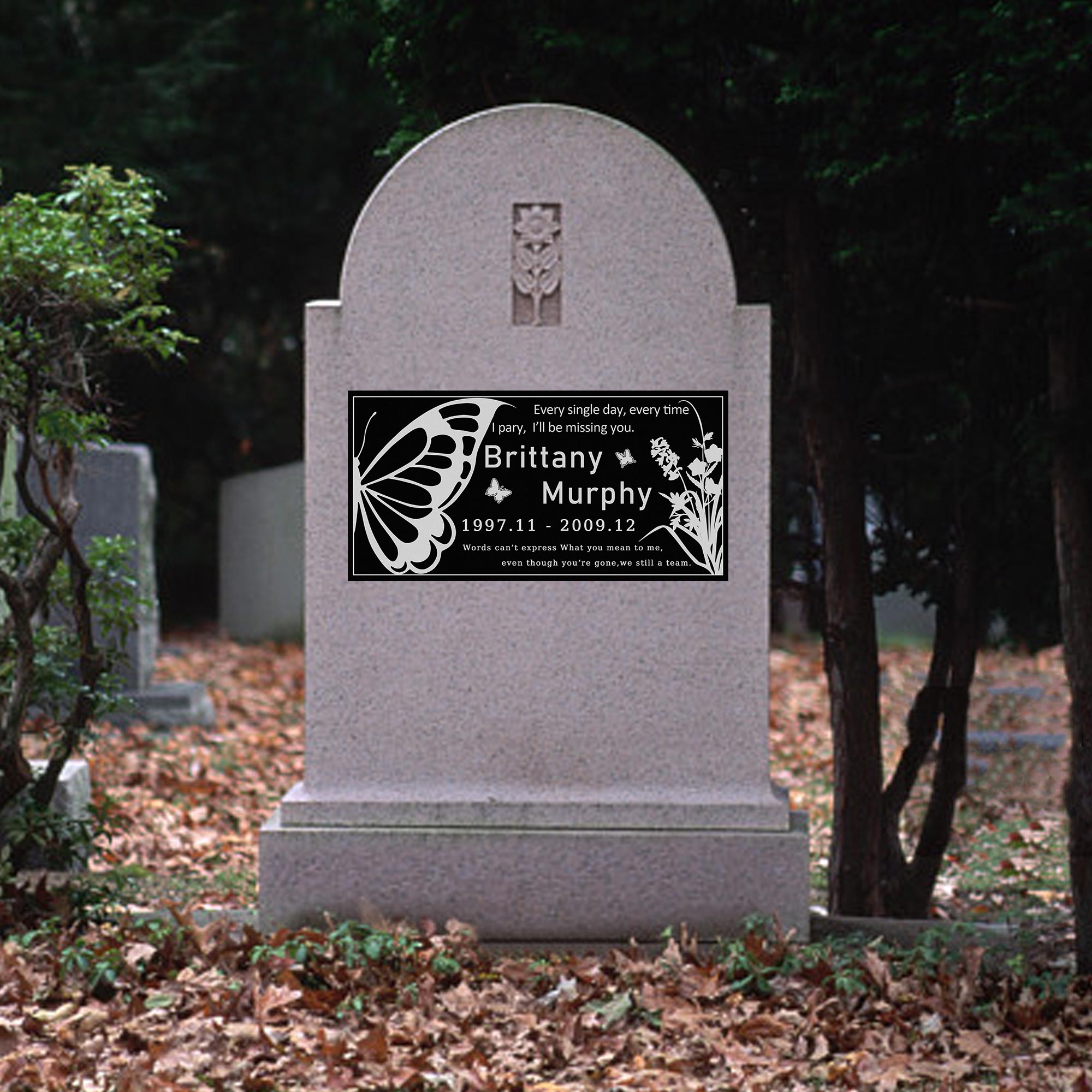 • Material and Artwork of the Memorial Stone: This human memorial stone is made of natural black granite stone (water resistant, UV resistant and weather resistant) with laser engraved art work. It will come out only with black and white color. It can be put into a burial site as temporary head stone or monuments.